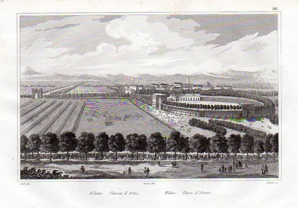 MILANO - "Piazza d'Armi". Bella veduta prospettica.