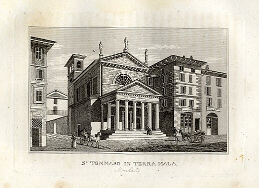 MILANO - "S.t Tommaso in Terra Mala", bella veduta della chiesa milanese con passanti e carrozze.