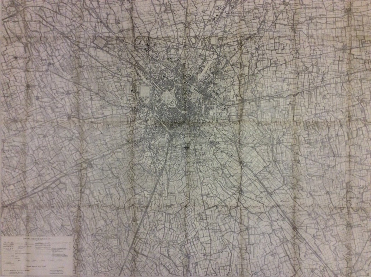 Grande carta topografica in bianco e nero (più volte ripieg.), di cm. 91 x 116, inserita in una copertina editoriale in brossura figur. a colori (cm. 23x14). Nuovissima carta topografica al 25.000, colle ultime strade costrutte, il Milanino, il quartiere Regina Elena, quello della Bicocca, il campo di corse a Trenno, ecc.. Esemplare ben conservato.