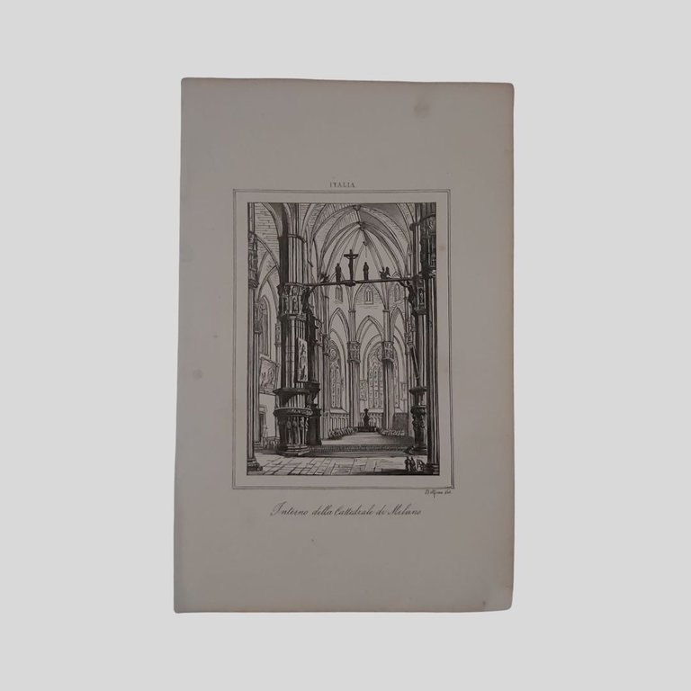 Litografia su disegno di Dolfino, 1852, cm 25,3×16 (tavola). Lievi fioriture e piccola piegatura all’angolo inferiore. Tratta da: Cesare Malpica, Panorama dell’universo, Napoli, Stab. dell’Ateneo 1852. Cesare Malpica. Prima avvocato poi insegnante infine giornalista, deve la sua fortuna letteraria – sebbene non univocamente giudicata dalla critica – proprio al reportage. Per lo più concentrate tra gli anni Quaranta e Cinquanta dell’Ottocento, escono le sue impressioni di viaggiatore dedicate a Venti giorni a Roma, Un mese negli Abruzzi: impressioni, ma anche Dal Sebeto al Faro: impressioni di un viaggio nelle Calabrie, e ancora Toscana, Umbria e Magna Grecia per arrivare, nel 1847, a una monografia dedicata alla Basilicata.