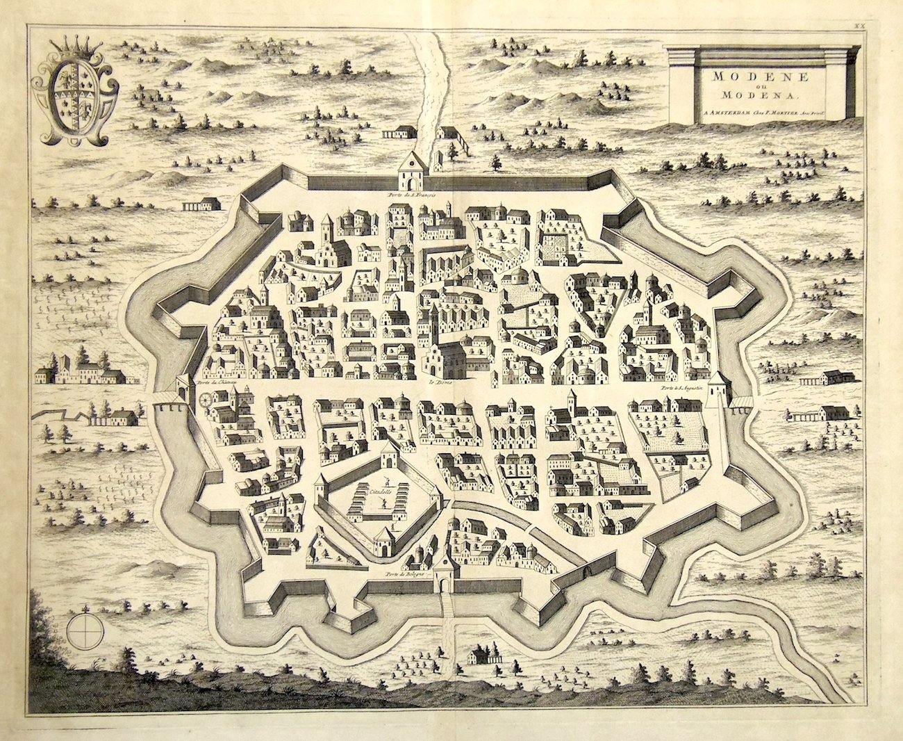 Incisione in rame, mm 435x533. Mortier, editore attivo ad Amsterdam ad inizio XVIII secolo, ristampò il "Theatrum Civitatum…Italiae" di Blaeu, pubblicato originariamente nel 1663 aggiungendovi un quarto volume, relativo a nord Italia e Toscana. Buon esemplare rappresentante la pianta della città a volo d'uccello. Tracce di ossidazione leggere.