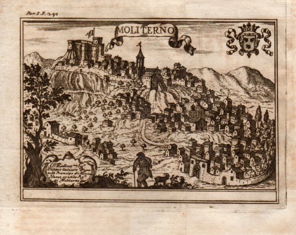 Incisione all’acquaforte, f. 14×19 cm. ca. In: PACICHELLI, Giovanni Battista – Il Regno di Napoli in prospettiva… Napoli, Stamperia Luigi Mutio