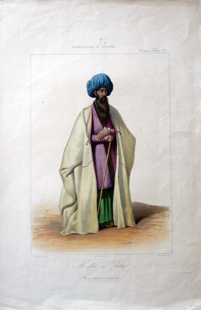 Lith. Jane Lange – Aubert, Paris, 1850 circa. Dalla "Galerie Royale de Costumes", una serie di costumi pubblicata da Aubert a Parigi intorno al 1850 e dedicata prevalentemente a Europa e Africa; e da un disegno di Eug. Flandin. Litografia in raffinata e coeva coloritura, cm 24 x 34,5 (la parte figurata) più ampi margini. Alcune lievi gualciture del foglio, bello il colore, buona conservazione. .