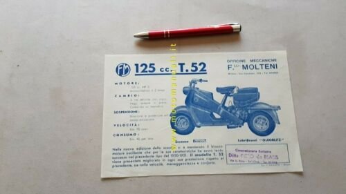 Molteni 125 scooter 1950 depliant originale italiano brochure