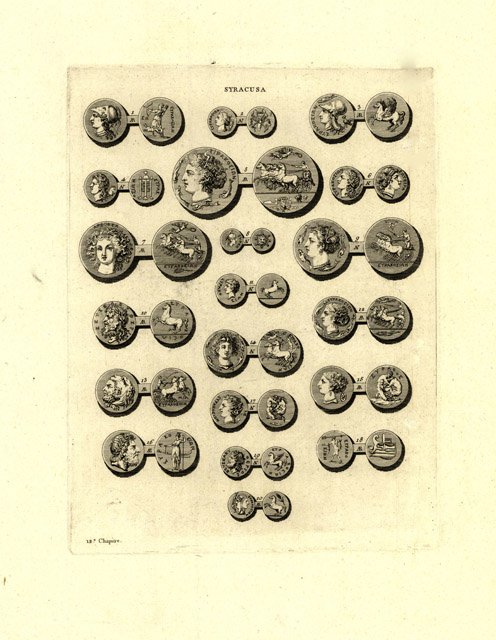 Raffigurazione di 12 monete entro ricco cartiglio