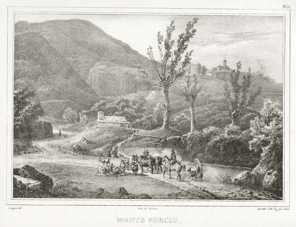 MONTE PORZIO CATONE - "Monte Porcio, près Frascati". Suggestivo paesaggio animato
