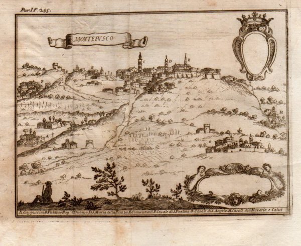 Incisione all'acquaforte, f. 14x18 cm. ca.In: PACICHELLI, Giovanni Battista - Il Regno di Napoli in prospettiva. Napoli, Stamperia Luigi Mutio