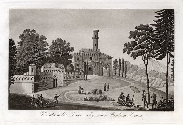 MONZA - " Veduta della Torre nel Giardino Reale".