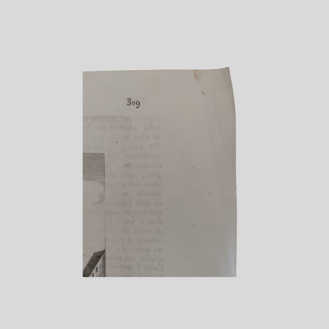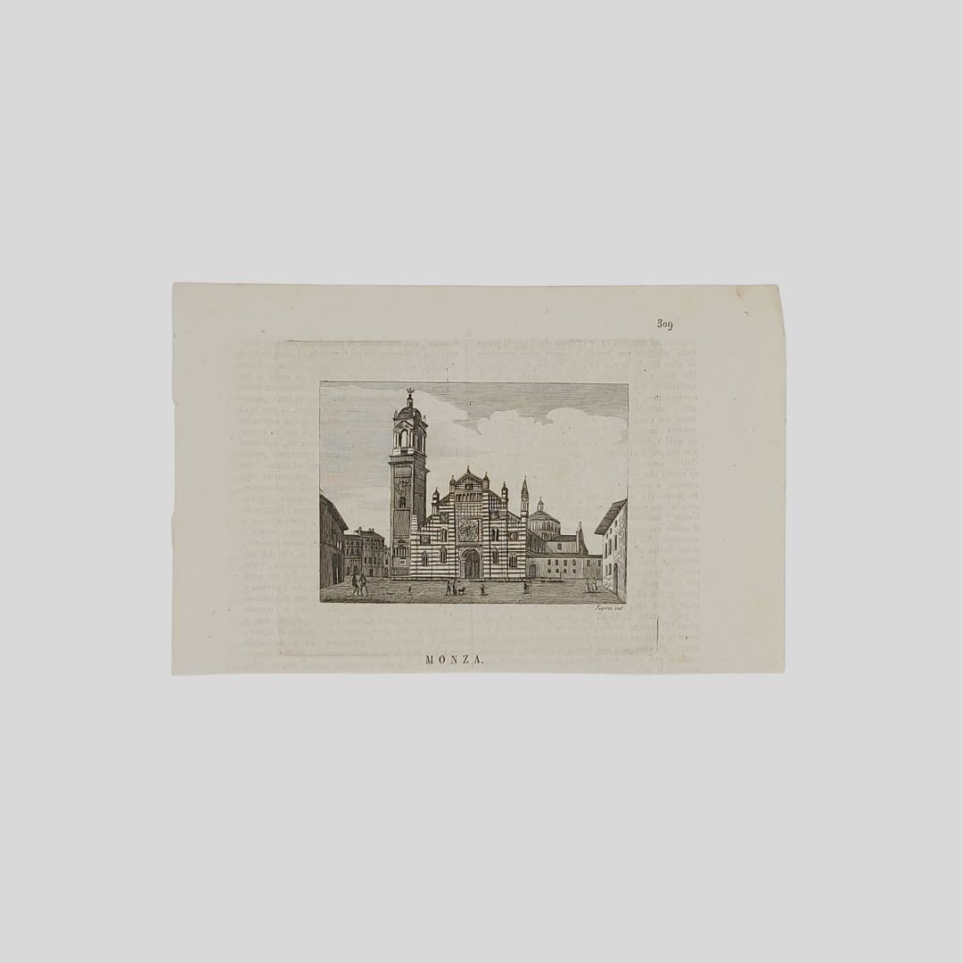 Incisione su rame di Vincenzo Segoni [1740 ca. – 1820 ca. ]. 1839 ca., mm 135×111 (alla battuta), mm 210×135 (tavola). Lieve piega al margine superiore bianco, in buone condizioni. Tratta da: L’Omnibus Pittoresco
