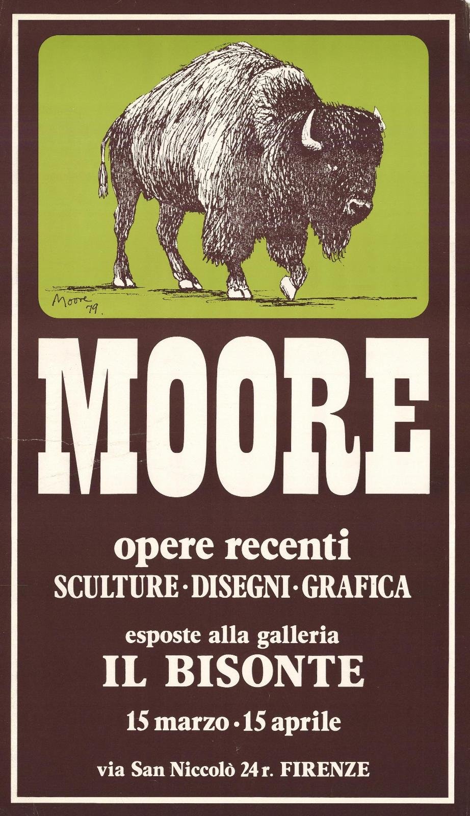 Locandina originale. Scultura, disegni, grafica alla Galleria il Bisonte, 15 marzo - 15 aprile, Firenze. Strappo al margine sx, usura agli angoli