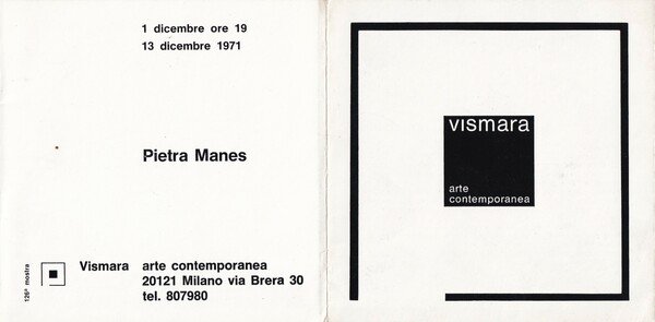 Mostra n.126 PIETRA MANES. Vismara Arte Contemporanea - Milano. 1971