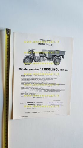 MOTO GUZZI Ercolino 192 1956 depliant originale Motocarro 3-wheeler brochure