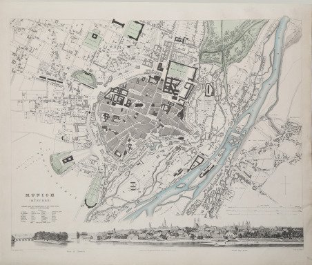 Una bella mappa preparata per l'Atlante della S.D.U.K. La Society for the Diffusion of Useful Knowledge, o S.D.U.K., come era conosciuta, produceva mappe a basso costo per incoraggiare un ampio uso nell'istruzione. Le mappe contenute in questi due volumi furono pubblicate in parte nel corso di diversi anni. Di particolare interesse sono le piante delle città, con vignette e grandi dettagli. Il loro atlante più importante consisteva in circa 200 mappe emesse separatamente, inizialmente pubblicate da Baldwin e Cradock e vendute per abbonamento dal 1829 al 1844. In seguito, la Società riunì le mappe in un unico atlante mondiale pubblicato con il marchio Chapman and Hall. All'epoca, questo atlante era senza precedenti per qualità, portata e convenienza. Oggi le mappe della Society, o S.D.U.K. come viene comunemente chiamato, sono tra gli esempi più importanti dell'editoria cartografica popolare inglese della metà del XIX secolo. La S.D.U.K. è nota soprattutto per le sue bellissime e accuratamente dettagliate piante di città. Le carte vennero incise da J. & C. Walker. Incisione in acciaio con contorno a colori coevo, ottimo stato di conservazione. A nice map prepared for the Atlas of the S.D.U.K. The Society for the Diffusion of Useful Knowledge, or S.D.U.K., as the Society was known, produced inexpensive maps to encourage broad use in education. The maps in these two volumes were issued in parts over several years. The city plans are of particular interest, with vignettes and great detail. Their most important atlas consisted of some 200 separately issued maps, initially published by Baldwin and Cradock and sold by subscription from 1829 to 1844. Later, the Society combined the maps into a single world atlas published under the Chapman and Hall label. At the time, this atlas was unprecedented in quality, scope, and affordability. Today, the Society's maps, or S.D.U.K. as it is commonly called, are among the most impressive examples of mid-nineteenth-century English mass cartographic publishing. S.D.U.K. is best known for its beautiful and accurately detailed city plans. The first edition being published by Baldwin and Cradock, with the maps issued in numbers and later bound as a set. Engraved by J. & C. Walker. Published by the Society for the Diffusion of Useful Knowledge, 59 Lincolns Inn Fields, Novr. 26th. 1838. (London: Chapman & Hall, 1844). Steel-engraving with contemporary outline colour, good condition. Cfr.