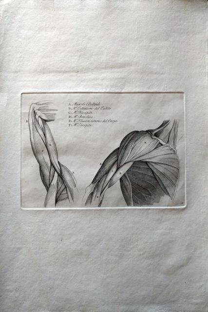 1830 circa. Incisione in rame all'acquaforte, cm 29,5 x 44,5 (il foglio), voci didascaliche in italiano corsivo (il titolo riportato è quello della prima voce). Fogli stampati su buona e morbida carta dai margini irregolari. Buono stato di conservazione.