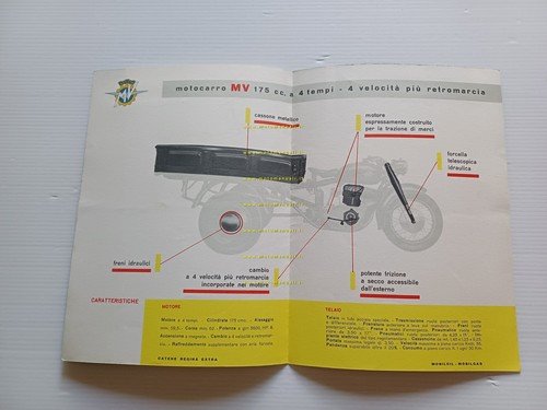 MV Agusta 175 Motocarro 1956 depliant italiano originale