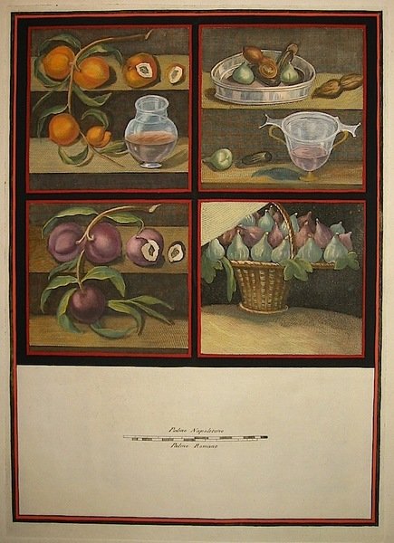Incisione originale su rame (cm. 24,5x34,5 più ampi margini), tratta dall’opera ‘Le pitture antiche d’Ercolano e contorni.’ di Ottavio Antonio Baiardi. Bella coloritura a tempera e acquerello.