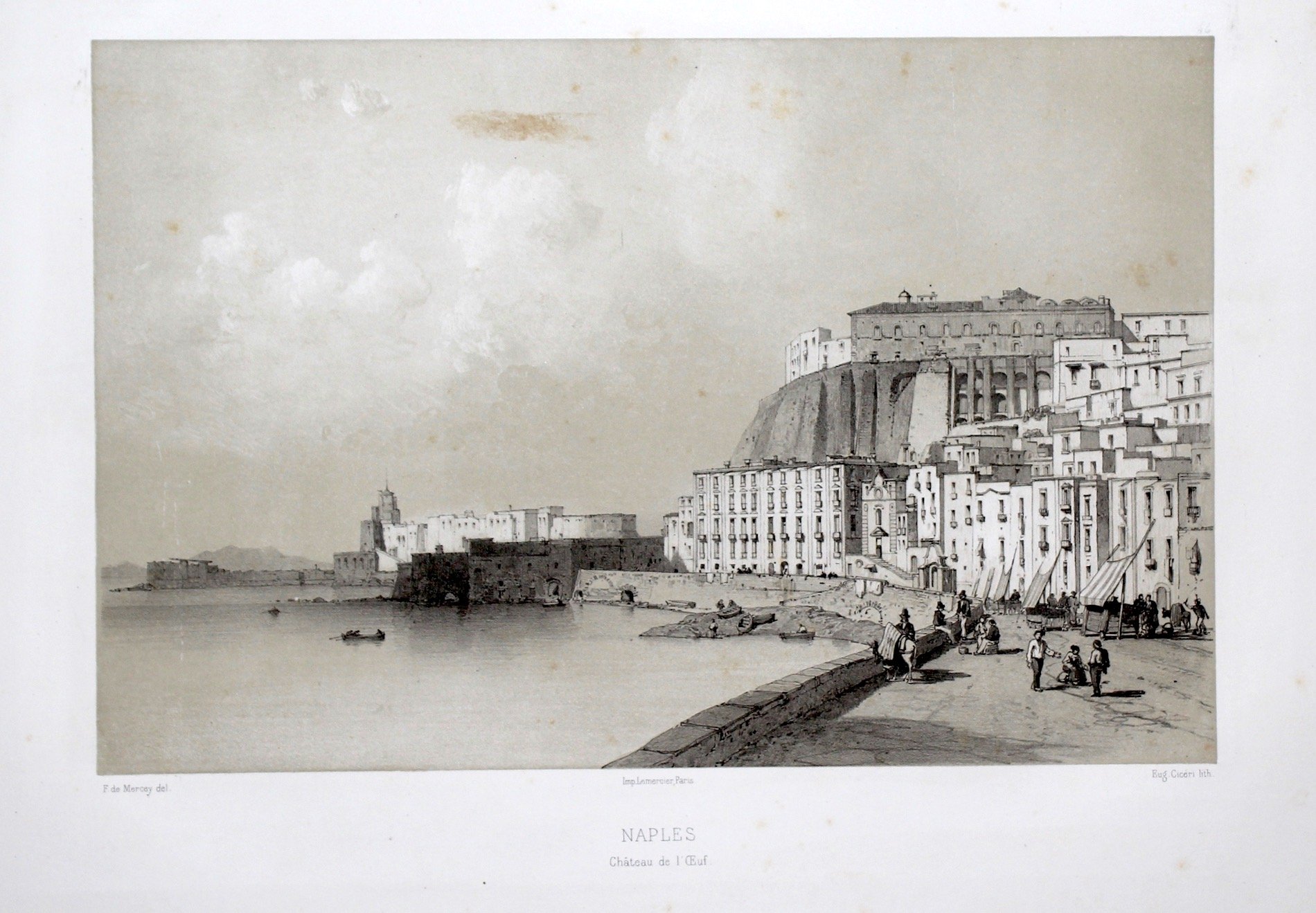 Litografia eseguita su soggetto di F. de Mercey, stampata da Lemercier, 236x360. Bella veduta animata da popolani lungo la strada. Esemplare molto bello, a pieni margini, qualche leggera fioritura, una lieve macchia nel cielo.