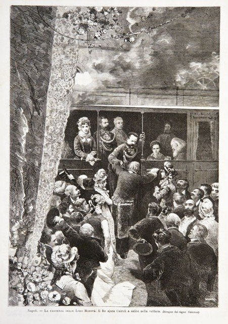 Napoli.- La partenza delle Loro Maestà. Il Re ajuta Cairoli a salire nella vettura