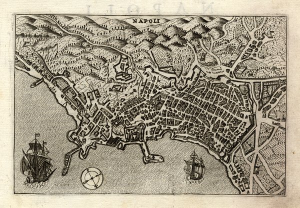 NAPOLI - "Napoli". Veduta dall'alto della città , in evidenza il golfo con due velieri.