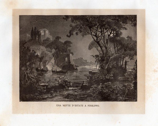 NAPOLI - "Una notte d'estate a Posilippo". Suggestiva veduta notturna di Posillipo al chiaro di luna.