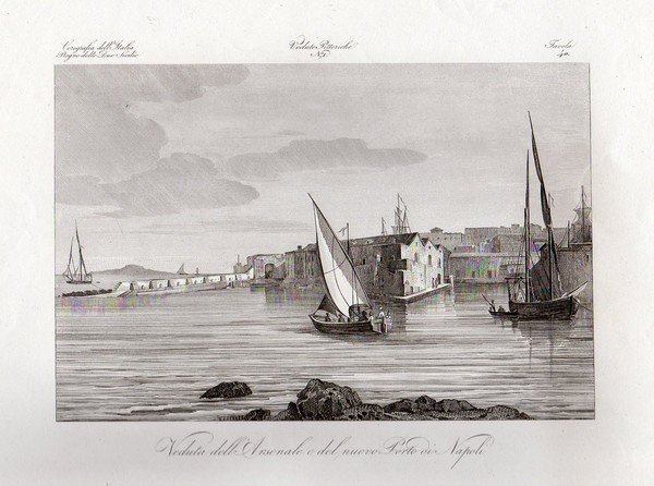 NAPOLI – “Veduta dell’Arsenale e del Nuovo porto di Napoli� animata marina.