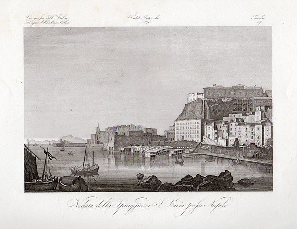 NAPOLI – “Veduta della Spiaggia di S. Lucia presso Napoli� bella veduta con barche.