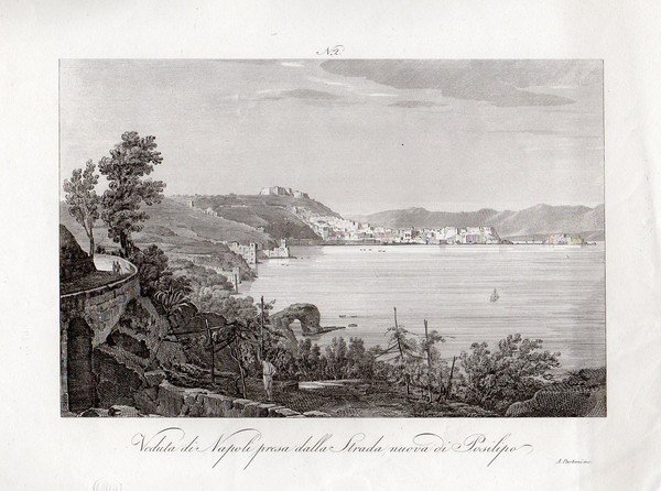 NAPOLI – “Veduta di Napoli presa dalla Strada nuova di Posilipo� bellissimo scorcio paesaggistico
