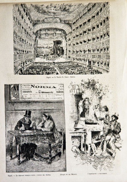 Napoli / Il Teatro S. Carlo: Interno / Lo scrivano pubblico sotto i portici del teatro / I mangiatori di maccheroni