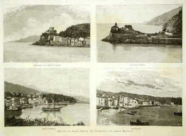 Raffigurazione in quattro vignette di alcune località caratteristiche del golfo: Portovenere, Lerici, Fezzano e San Terenzio. Testo al verso