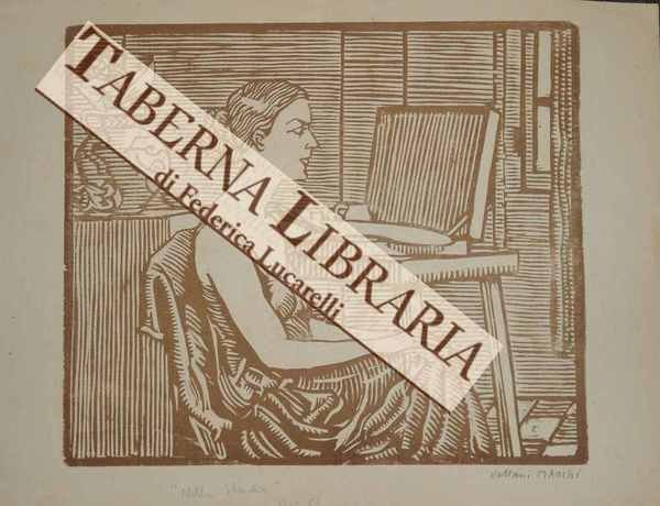 Xilografia originale in marrone tratta dalla rivista "L'Eroica", n. 87-90 del 1924. Dimensioni relative alla sola parte incisa mm. 126x100 e 122x118 su foglio di mm. 320x245 Buon es.