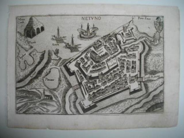 Francesco Bertelli, Padova, 1629. Pianta planimetrica della città tratta dal “Theatro delle Città d’Italia” di Pietro Bertelli, stampato dal figlio Francesco. Incisione in rame, b/n, cm 11,8 x 18,0 circa (alla lastra).