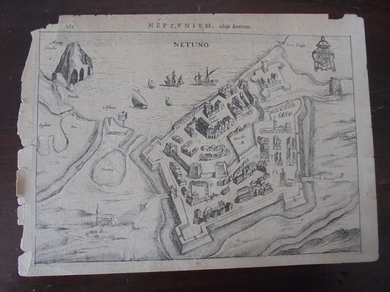 Pubblicato nel "Theatrum Urbium Italicarum". Incisione su rame di mm. 245 x 170 (=lxh) circa più margini. Incisa da Pietro Bertelli. Margini sciupati.