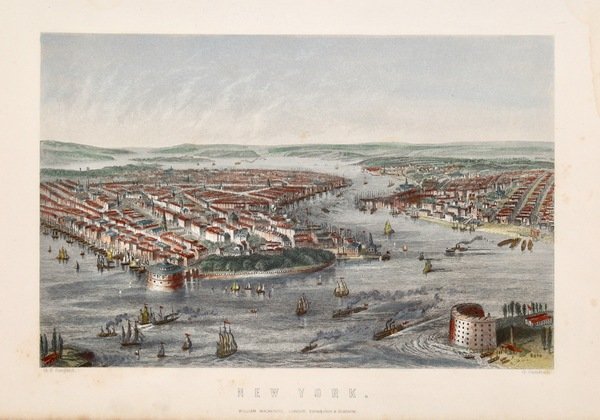 Incisione in acciao, mm 125x195. Bella veduta di Manhattan e Brooklyn da sud su disegno di G.F. Sargent. Ottime condizoni. <BR>Steel engraving, mm 125x195. Nive view of Manhattan and Brooklyn from South after a subject by G.F. Sargent. Very good condition <BR>