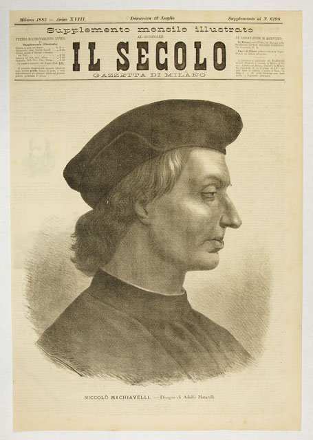 Ritratto del famoso personaggio, supplemento del mese di luglio del giornale "Il Secolo". Testo al verso
