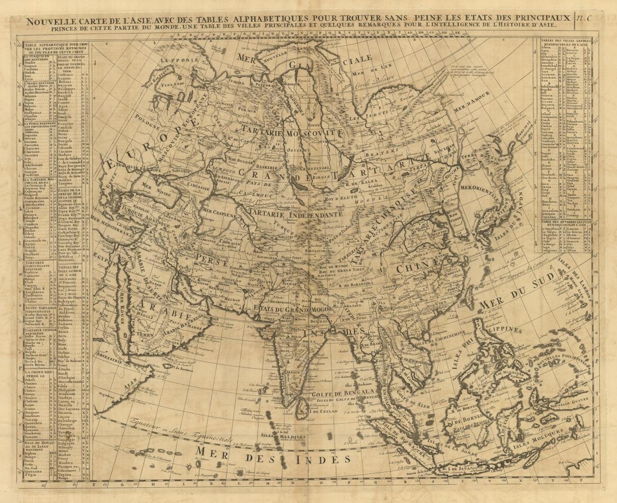 Nouvelle Carte De L'Asie: Avec Des Tables Alphabetiques Pour Trouver Sans Peine Les Etats Des Principaux Princes De Cette Partie Du Monde.