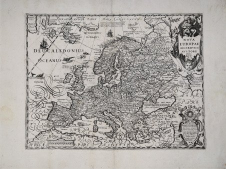 Acquaforte e bulino, 1619, firmata in lastra - nel cartiglio in basso a destra – con l’imprint editoriale Iustus Sadeler excudit Venetijs. Magnifica prova, impressa su carta vergata coeva, con margini, in eccellente stato di conservazione. Carta geografica dell'Europa pubblicata separatamente, stampata da Iustus Sadeler a Venezia. Basata sul lavoro di Pieter van den Keere (Petrus Kaerius) del 1614 [cfr. Schilder, MCN, vol. VI, Map 25, pp. 158-160; Van der Heijden (1995), n. 6]. Copia fedele della carta à figure dell'Europa di Kaerius stampata a Venezia da Justus Sadeler nel 1619. L’opera, apparentemente sconosciuta alla bibliografia, non si trova in nessuno dei repertori elencati in basso da noi consultati. Incisore e mercante di stampe appartenente alla seconda generazione della dinastia dei Sadeler, celebre famiglia di incisori e stampatori fiamminghi attiva in tutta Europa per tre generazioni. Unico figlio maschio di Jan Sadeler, capostipite della dinastia Justus raggiunse il padre in Italia e visse con lui a Venezia, dove probabilmente lo aiutava nella gestione della bottega e lo accompagnò anche durante il suo viaggio a Roma. Dopo la morte di Jan Sadeler, Justus rimase a Venezia dove continuò, probabilmente insieme allo zio Raphael I, l’attività paterna di incisore ed editore. Ha eseguito soggetti di riproduzione sia di artisti olandesi e fiamminghi sia di artisti italiani: Federico Zuccari, Antonio Tempesta, Odoardo Fialetti. Le notizie riguardanti la sua data di nascita non sono certe, così come il luogo della sua morte. Secondo alcuni studiosi sarebbe morto a Venezia nel 1620, secondo altri accompagnò l'ambasciatore veneziano in Olanda, morendo improvvisamente di febbre a Leida (cfr. P. Sénéchal, Justus Sadeler Print Publisher and Art Dealer in Early Seicento Venice). ' Un bell'esemplare con margini pieni (non tagliati). ' Bibliografia Johannes Keuning, Pieter van den Keere (Petrus Kaerius), in Imago Mundi, Vol. 15 (1960), pp. 66-72; Philippe Sénéchal, Justus Sadeler Print Publisher and Art Dealer in Early Seicento Venice, in Print Quarterly, Vol. 7, No. 1 (MARCH 1990), pp. 22-35; G. Schilder, Monumenta Cartographica Neerlandica, vol. VI (2000) pp. 158-160; H.A.M. van der Heijden, De Oudste gedrukte kaarten van Europa, Utrecht1992. UNKOWN Map of Europe by Justus Sadeler. Etching and engraving, 1619, signed on the plate - in the cartouche at lower right - with the editorial imprint Iustus Sadeler excudit Venetijs. Magnificent proof, printed on contemporary laid paper, with margins, in excellent condition. Separately published map of Europe, printed by Iustus Sadeler in Venice. Based on the work of Pieter van den Keere (Petrus Kaerius) of 1614 [see Schilder, MCN, vol. VI, Map 25, pp. 158-160; Van der Heijden (1995), no. 6]. Faithful copy of Kaerius's map à figure of Europe printed in Venice by Justus Sadeler in 1619. The work, apparently unknown to the bibliography, is not found in any of the repertories listed below that we consulted. Justus was and engraver and print dealer belonging to the second generation of the Sadeler dynasty, a famous family of Flemish engravers and printers active throughout Europe for three generations. The only son of Jan Sadeler, founder of the Justus dynasty, he joined his father in Italy and lived with him in Venice, where he probably helped him in the management of his workshop and also accompanied him during his trip to Rome. After the death of Jan Sadeler, Justus remained in Venice where he continued, probably together with his uncle Raphael I, the paternal activity of engraver and publisher. He executed reproductions of Dutch and Flemish artists as well as Italian artists: Federico Zuccari, Antonio Tempesta, Odoardo Fialetti. The news regarding his date of birth is not certain, as well as the place of his death. According to some scholars he died in Venice in 1620, according to others he accompanied the Venetian ambassador to Holland, dying suddenly of fever in Leiden (cf. P. Sénéchal, Justus Sadeler Print Publisher and Art Dealer in Early Seicento Venice). A beautiful example with full (uncut) margins. ' Bibliografia ' Johannes Keuning, ' Pieter van den Keere (Petrus Kaerius), in ' Imago Mundi, Vol. 15 (1960), pp. 66-72; ' Philippe Sénéchal, ' Justus Sadeler Print Publisher and Art Dealer in Early Seicento Venice, in ' Print Quarterly, Vol. 7, No. 1 (MARCH 1990), pp. 22-35; ' G. Schilder, ' Monumenta Cartographica Neerlandica, vol. ' VI (2000) pp. 158-160; ' H.A.M. van der Heijden, De ' Oudste gedrukte kaarten van Europa, Utrecht 1992. Cfr.