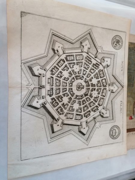 Dalla “Topographia Italiae”, Francoforte, 1688. Incisione in rame all’acquaforte, b/n, cm 28,9 x 32 ca. (alla lastra) più margini. Alcune tracce di inchiostratura al margine superiore ma buono stato.