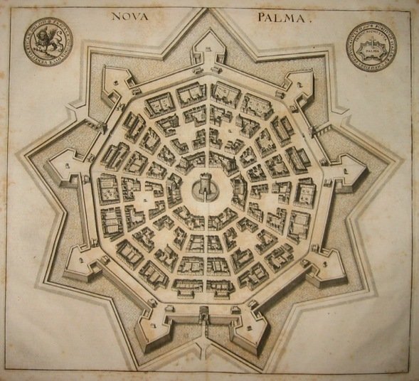 Incisione originale su rame (cm. 32x28,5 più ampi margini) tratta da ‘Itinerarium Italiae Nov-antiquae’ di Martin Zeiller. Lievi fioriture marginali altrimenti ottimo esemplare. Prima tiratura.