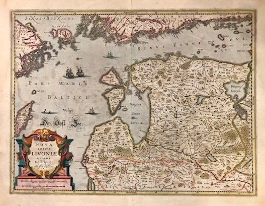 Carta geografica originale (cm. 52x39 più ampi margini bianchi) tratta dall’edizione in lingua latina dell’ ‘Atlas novus, sive descriptio geographica orbis terrarum’ pubblicato da Johannes Janssonius ed Henricus Hondius. Splendida coloritura d’epoca all’acquarello. Carta lievemente brunita, peraltro esemplare in ottimo stato di conservazione. Rara.