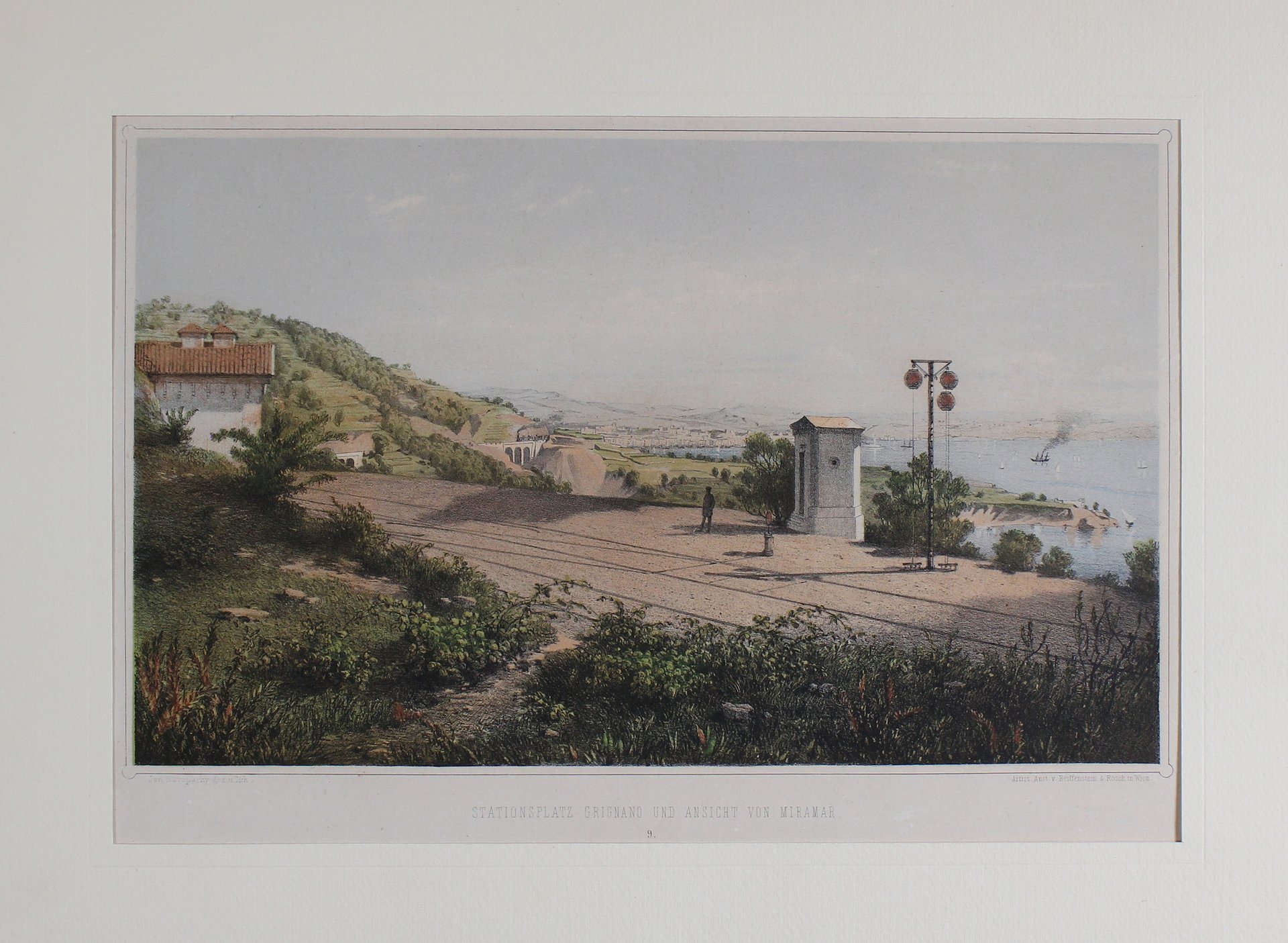 NOVOPACKY JOHANN. Stationsplatz Grignano und Ansicht von Miramar. - Vienna, Reisenstein & Rosch, 1857.