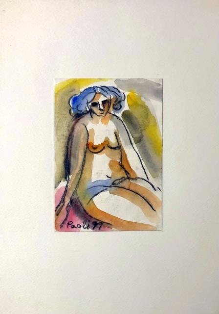 1999. Matita nera e acquarello su carta, cm 11 x 15,5 circa. In basso a sinistra la firma “Paoli 99”. Piacevoli il disegno e la coloritura. Ottimo stato di conservazione. Franco Paoli (Rio Marina, 1933 - 2011) pittore, scultore e poeta. Pittore “irrazionale” Paoli non diventa labronico: il suo è uno stile caldo che si manifesta in colori e forme di autonoma invenzione che rompono il limite fra figura e colore: ritratti, gruppi di figure, vedute e marine, nature morte richiamo la maniera di Cézanne con di scavare nell’animo dei soggetti. Negli anni ‘70 è componente attivo del gruppo de “Gli irrazionali” insieme a Paolo Bottai, Mauro Gani, Guido Guideri, Enrico Mori e Ellenio Mischi; negli anni ‘90 aderisce all’esperienza dei “Tintori”. Espone in Italia e all’estero ricevendo numerosi premi e consensi.