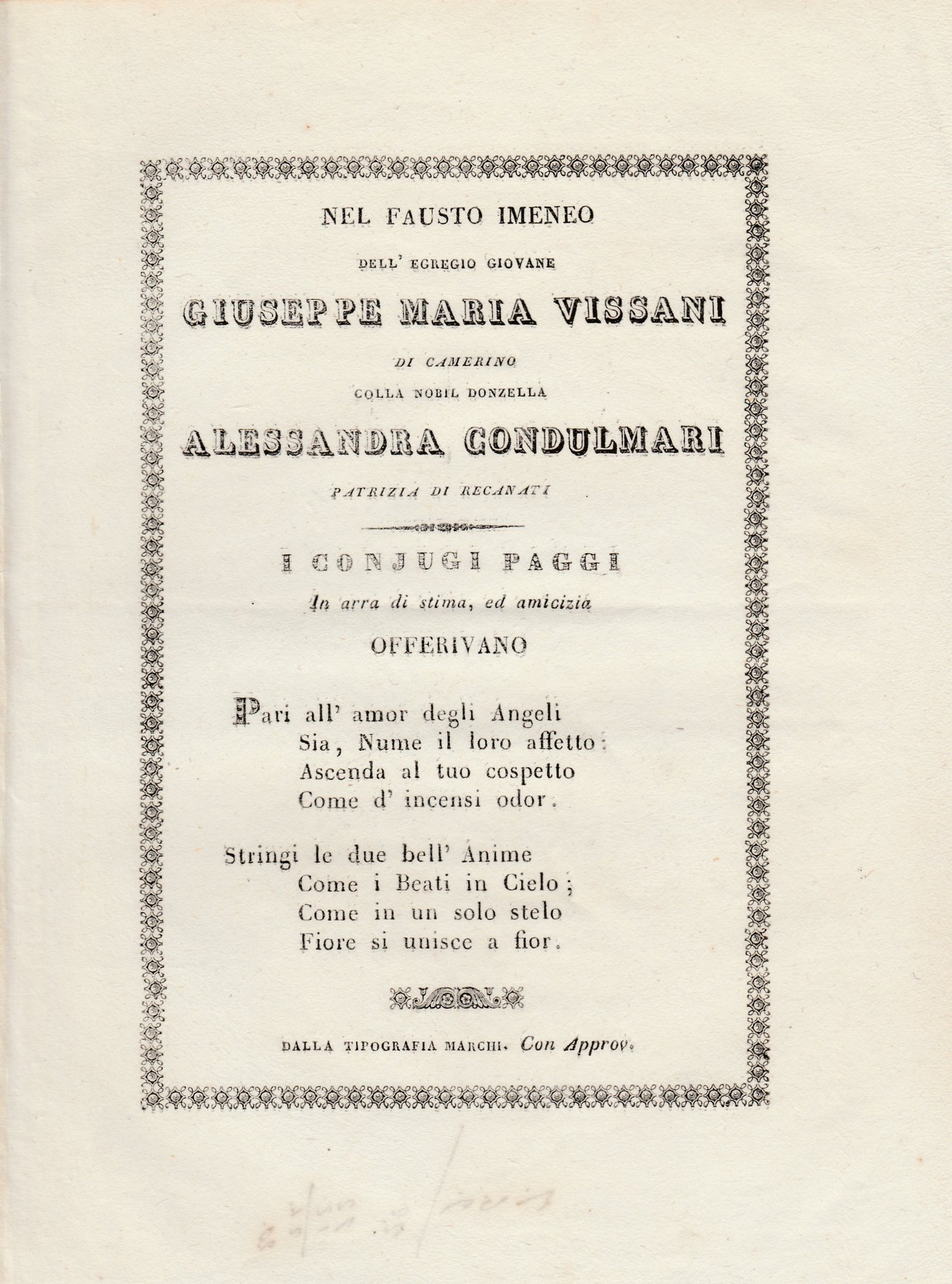 Ode Alla Nozze Di Giuseppe Maria Vissani Di Camerino E Alessandra Condulmari