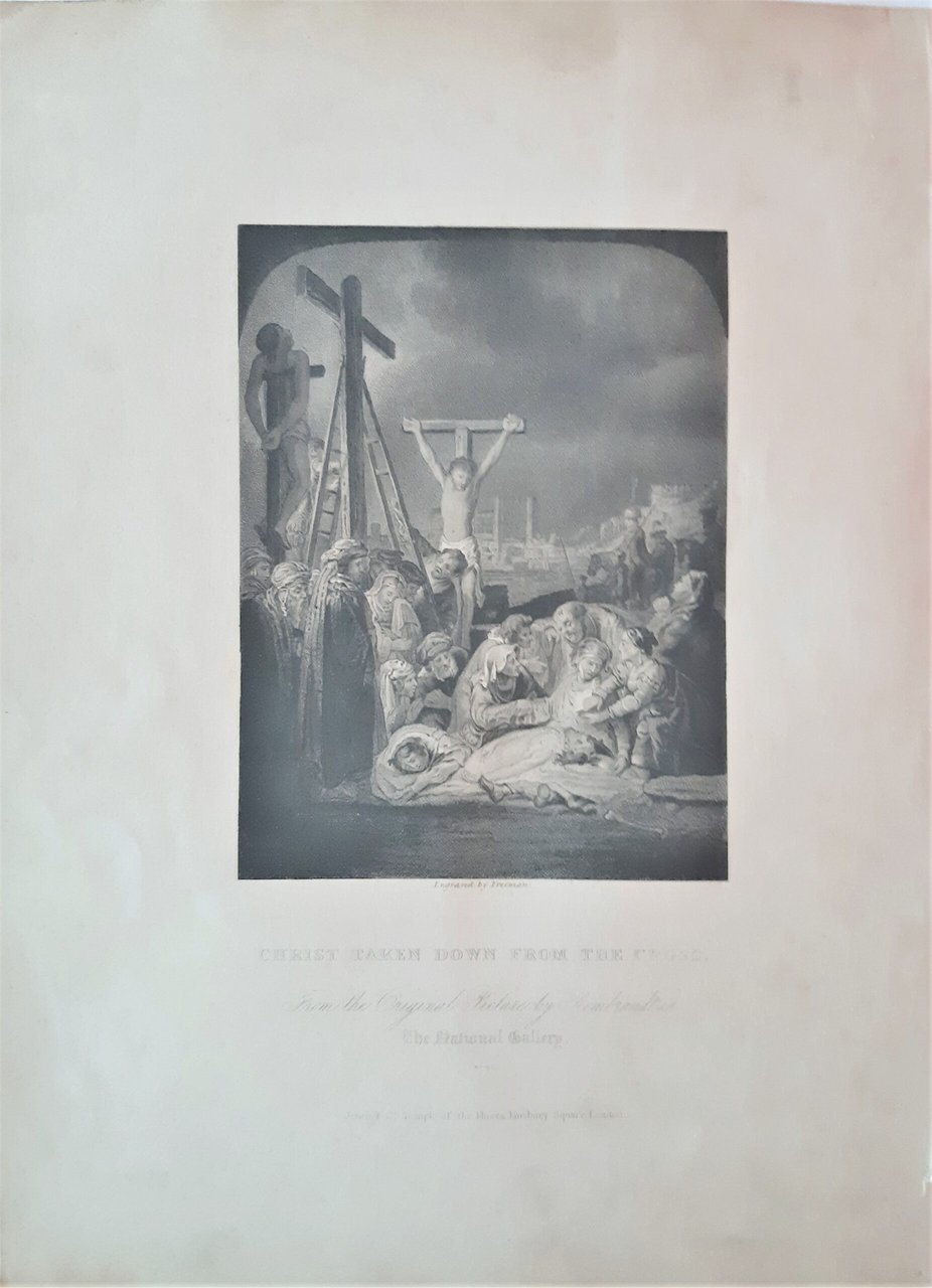 Old print stampa antica Cristo deposto dalla croce Christ taken down from the cross by Rembrandt 1835