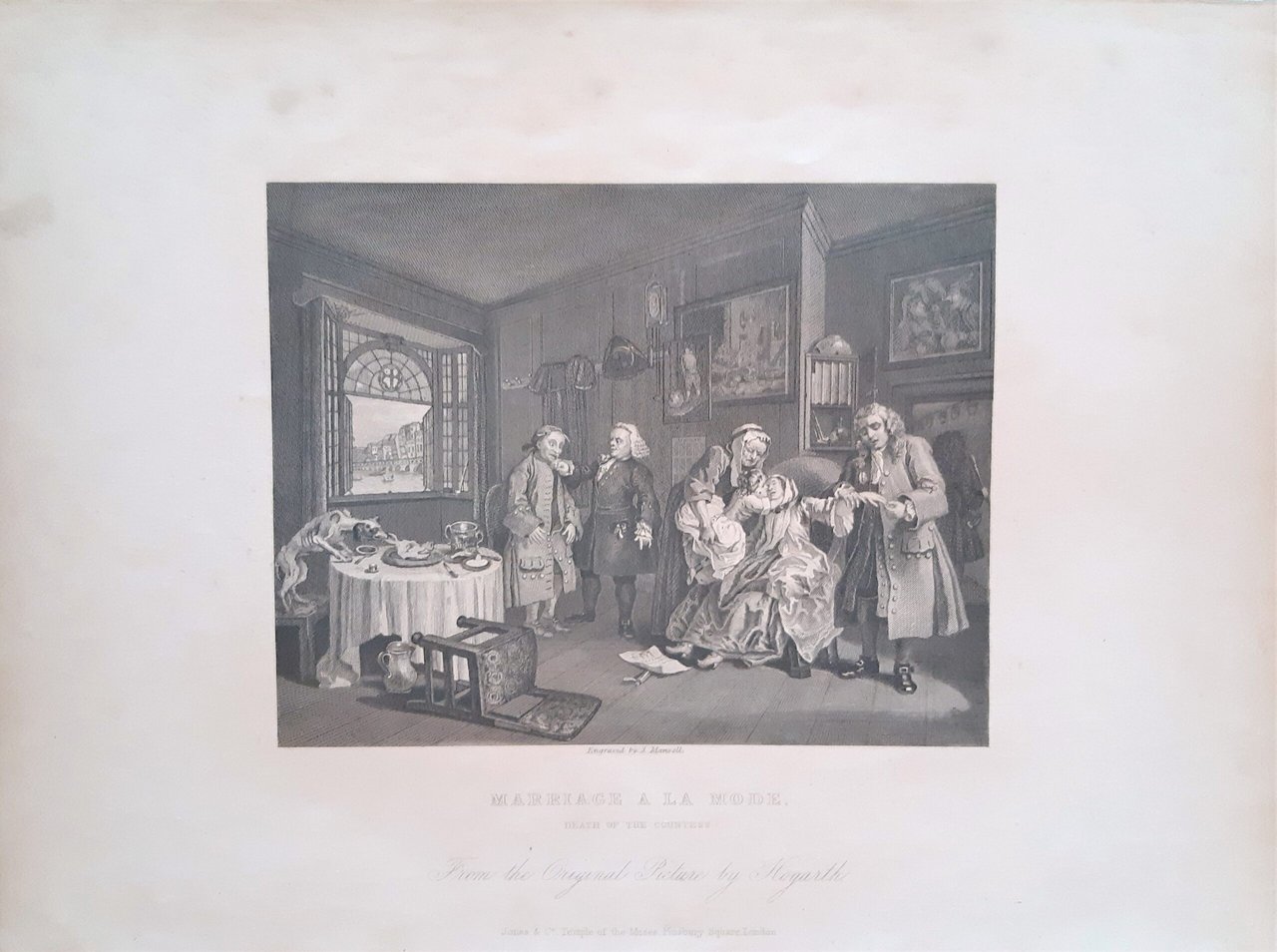 Old print stampa antica Matrimonio a la mode morte della contessa Marriage a la mode death of the countess di Hogarth 1835