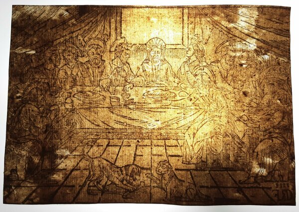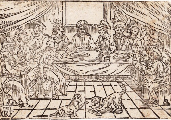 Old print Xilografia Stampa Giudo Ruggeri o Ruggieri L'ultima cena 1528