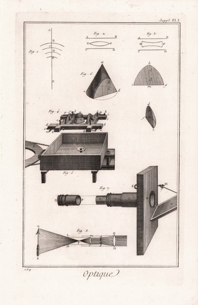 Tavola tratta da ' Encyclopédie ou Dictionnaire raisonné des sciences, des arts et des métiers, di Diderot e D’Alambert. L’opera è una vasta enciclopedia, ' pubblicata nel XVIII secolo, in lingua francese, da un consistente gruppo di intellettuali sotto la direzione di Diderot e D'Alembert. Essa rappresenta un importante punto di arrivo di un lungo percorso teso a creare un compendio universale del sapere, nonché il primo prototipo di larga diffusione e successo delle moderne enciclopedie, al quale guarderanno e si ispireranno nella struttura quelle successive. Incisione in rame, in ottimo stato di conservazione. Copper engraving, in excellent condition. Taken from ' Encyclopédie ou Dictionnaire raisonné des sciences, des arts et des métiers, by Diderot and D'Alambert. ' This work is a great encyclopedia, ' published in the XVIII century, in French, by a large group of intellectuals under the direction of Diderot and D'Alembert. Cfr.