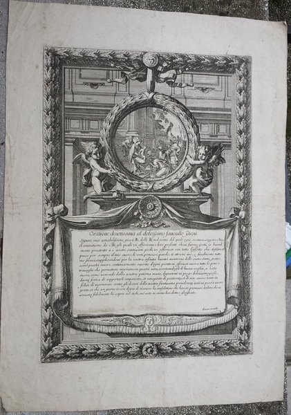 270 x 390 mm alla battuta. 360 x 502 mm il foglio. Bel foglio.