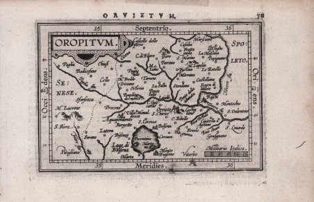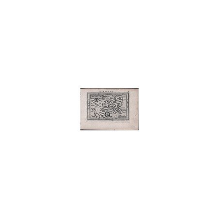 Carta geografica tratta dall'edizione latina di "Epitome theatri orbis terrarum" di Abraham Ortelius, nella nuova versione dell'editore Jan Keerbergen. Dopo la morte di Abraham Ortelius, nel 1598, Jan Keerbergen pubblica una nuova edizione dell'Epitome contenente 123 mappe, tutte incise dai fratelli Ambrose e Ferdinand Arsenius, copiando le precedenti lastre intagliate da Philipp Galle.Il testo è curato da Michael Coignet e conosce molteplici tirature in latino, francese, inglese tedesco ed italiano tra il 1601 ed il 1612.Incisione in rame, in ottimo stato di conservazione. Miniature map taken from the Latin edition of the ' Epitome theatri orbis terrarum, ' firts published in ' Antwerp by Jan Keerbergen, 1601 - followed by the editions by Jan B. Vrients, 1609 and Plantin Press, 1612. ' In 1601 Jan Keerbergen published the first edition of a world atlas with all the plates engraved by Ambrose and Ferdinand Arsenius and with text by Michael Coignet.The maps were all nicely drawn and engraved and easily recognized, as they have wide borders showing latitude and longitude. The 123 plates were for the most part copied from those in the 1601 Jan B. Vrients’ edition of Philip Galle’s version, though not arranged in the same sequence. Etching, good condition. Cfr. G. King, Miniature Antique Maps, pp. 86/87.