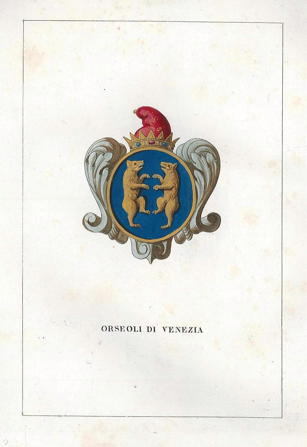 Stemma araldico della famiglia, finemente colorato a mano all'epoca con vivace acquerellatura a tempera. Inserita in una delle più importanti opere sull'araldica italiana in cui sono descritte ben 459 famiglie. L'opera è composta da bellissime incisioni di stemmi nobiliari in coloritura coeva e descrizioni genealogiche delle più importanti famiglie. Inserita nell'opera "Teatro araldico ovvero raccolta generale delle armi ed insegne gentilizie delle più illustri e nobili casate che sisterono un tempo e che tuttora fioriscono in tutta l'Italia. illustrate con relative genealogico-storiche nozioni da L. Tettoni e F. Saladini" Edita in Lodi e Milano pei tipi di Cl. Wilmant e figli dal 1841 al 1851. La stampa è accompagnata da pagine di testo storico descrittivo