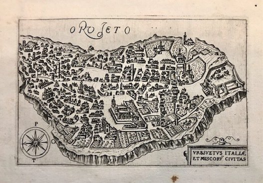 Incisione originale su rame (cm. 13x8,5 più ampi margini bianchi) impressa su carta vergellata. Tratta dall’opera ‘Nuova raccolta di tutte le piu illustri et famose citta di tutto il mondo’ pubblicata da Donato Rasicoti (o Rasciotti o Rascicotti). Esemplare in ottimo stato di conservazione. Molto rara. Francesco Valegio (1560 ca.-1650 ca.) operò quasi esclusivamente a Venezia come pittore, disegnatore, incisore, editore e mercante di stampe. La produzione artistica fu notevole: ritratti, soggetti storici e religiosi, illustrazioni per libri, carte geografiche, piante di città e incisioni di paesaggio. La sua opera calcografica più impegnativa è senz’altro la ‘Raccolta delle più illustri et famose città di tutto il mondo’ alla quale il Valegio contribuì con 112 incisioni mentre altre,fino al numero di 322, sono state eseguite da diversi incisori, tra cui molte da Martino Rota da Sebenico.
